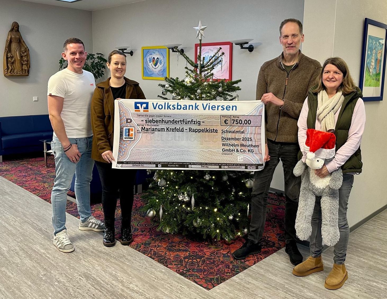 Eine unserer Spenden geht erneut an das Marianum Krefeld, eine Einrichtung, die Kinder, Jugendliche und Familien in herausfordernden Lebenssituationen begleitet und ihnen Sicherheit, Struktur und Zukunftsperspektiven bietet.